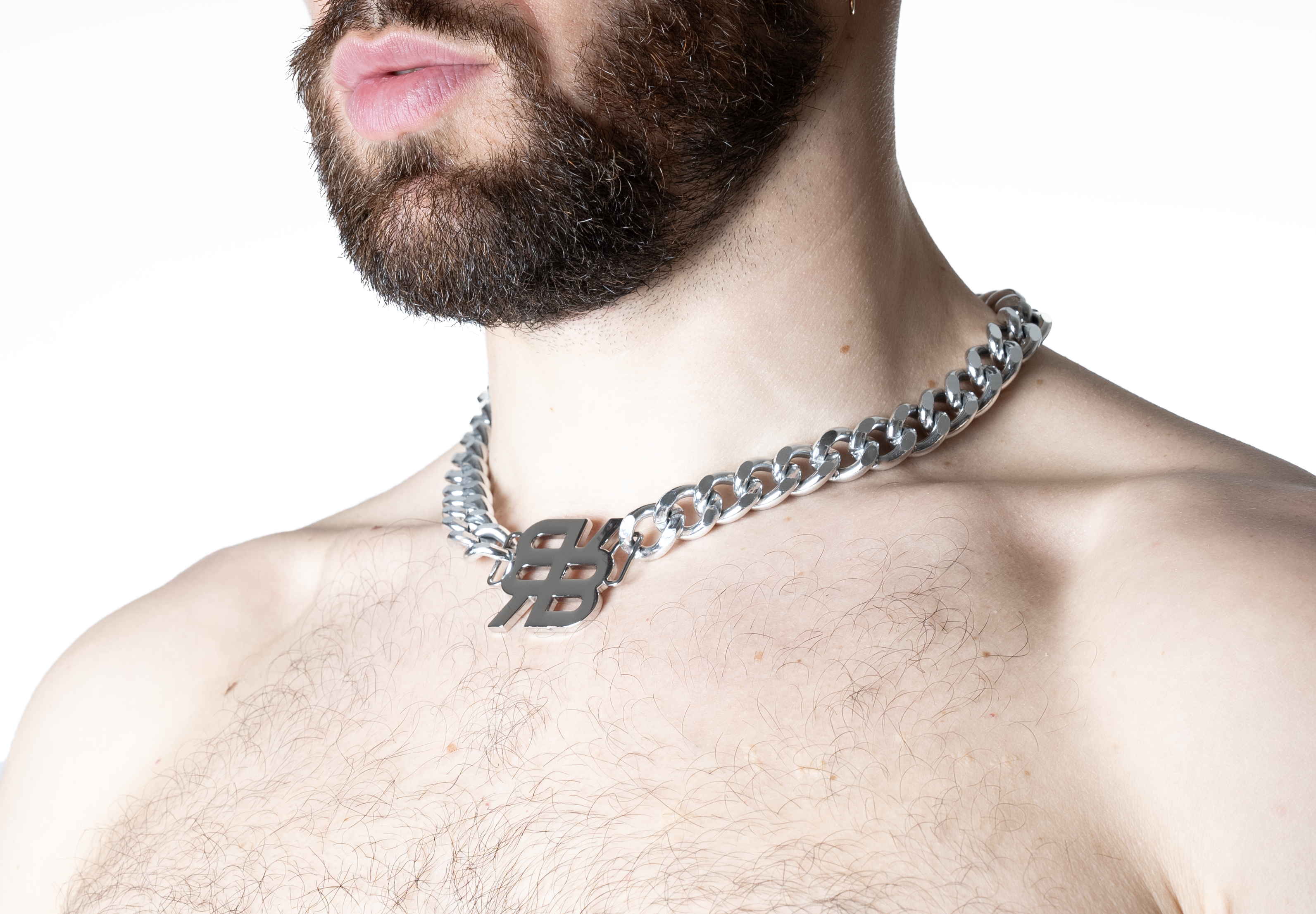 Metal chain neckless with monogram logo.